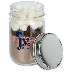 Hot Cocoa Printable Labels - girl. Inspired. And now for the hot cocoa ingredients list. For each 12-oz. mason jar, I layered: 1/4 cup nonfat, dry milk 2 tablespoons unsweetened cocoa powder 2 tablespoons granulated sugar dash of salt mini-chocolate chips mini-marshmallows The milk, cocoa powder, salt, and sugar will mix with 1 cup of boiling water to make a standard hot cocoa.
