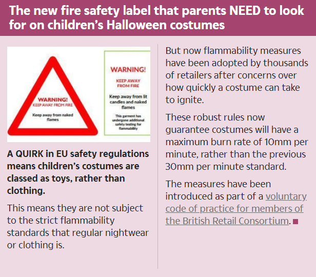 The new fire safety label that parents NEED to look for in ... - The Sun PARENTS are being urged to check for children's Halloween costumes for new fire safety labels. More robust flammability measures have been adopted by thousands of retailers, including Tesco, … Why are fire labels important? - Reuse Network The fire labels for mattresses, divans and bed bases are covered by a separate piece of legislation - BS 7177. They typically look like the following label: The label on mattresses and bed bases are usually sewn in and located at the bottom of the item. If your item does not have a fire label attached KEEP AWAY FROM FIRE clothing garment warning labels | eBay Union Flag Union Jack "Made in the UK" 35mm White Fabric Labels Tag Accessories Sponsored £6.00 + £3.50 P&P Keep Away From Fire, White Satin Care Label, Fire Warning Label £2.49 + £9.99 P&P Keep Away From Fire, White Woven Care Label, Fire Warning Label £2.49 + £9.99 P&P Black Size Tabs Labels XS,S,M,L,XL,XXL,XXXL Woven Clothing Garment Size £1.30 PDF Flammability labelling of children's dress-up Sew-in-Labels The garment must carry a permanent label with the words WARNING! KEEP AWAY FROM FIRE (in red letters) regardless of its testing performance All words must be in medium letters of 10 point in upper case, in-line with the Nightwear (Safety) Regulations The words must be in a durable print and must appear on the front of the a label ...