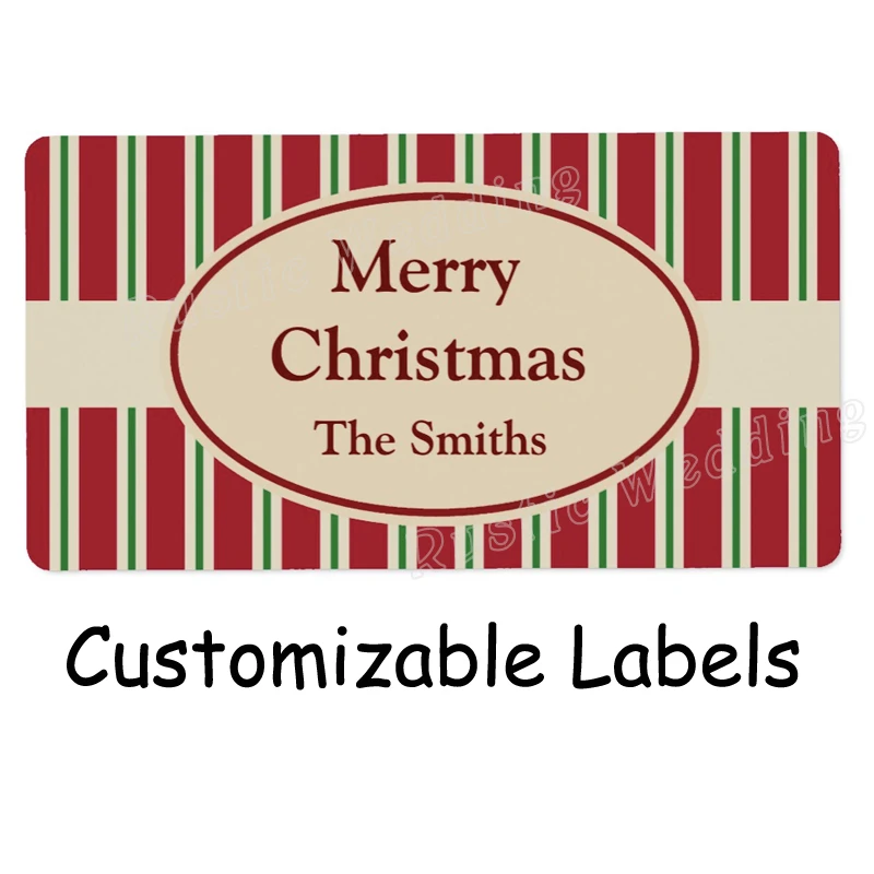 Personalized Striped Christmas Labels, Merry Kissmas Christmas goodie bag label, Stripe Label for Gift Bags & Holders